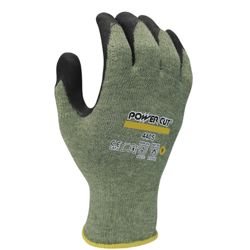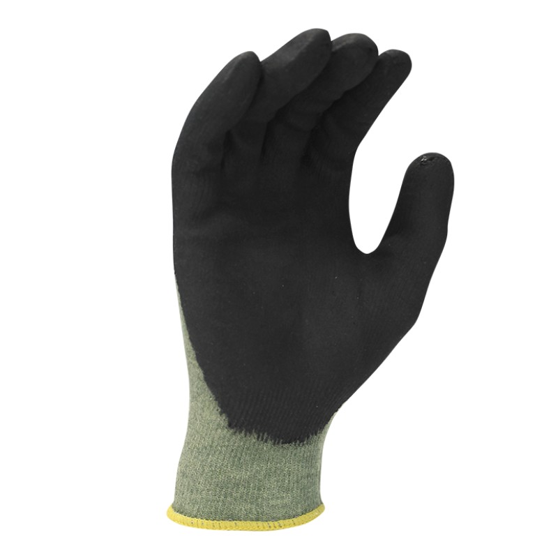 Guante sin costuras de fibra para-aramida, hilo de acero y elastano (spandex) recubierto de nitrilo NFT.