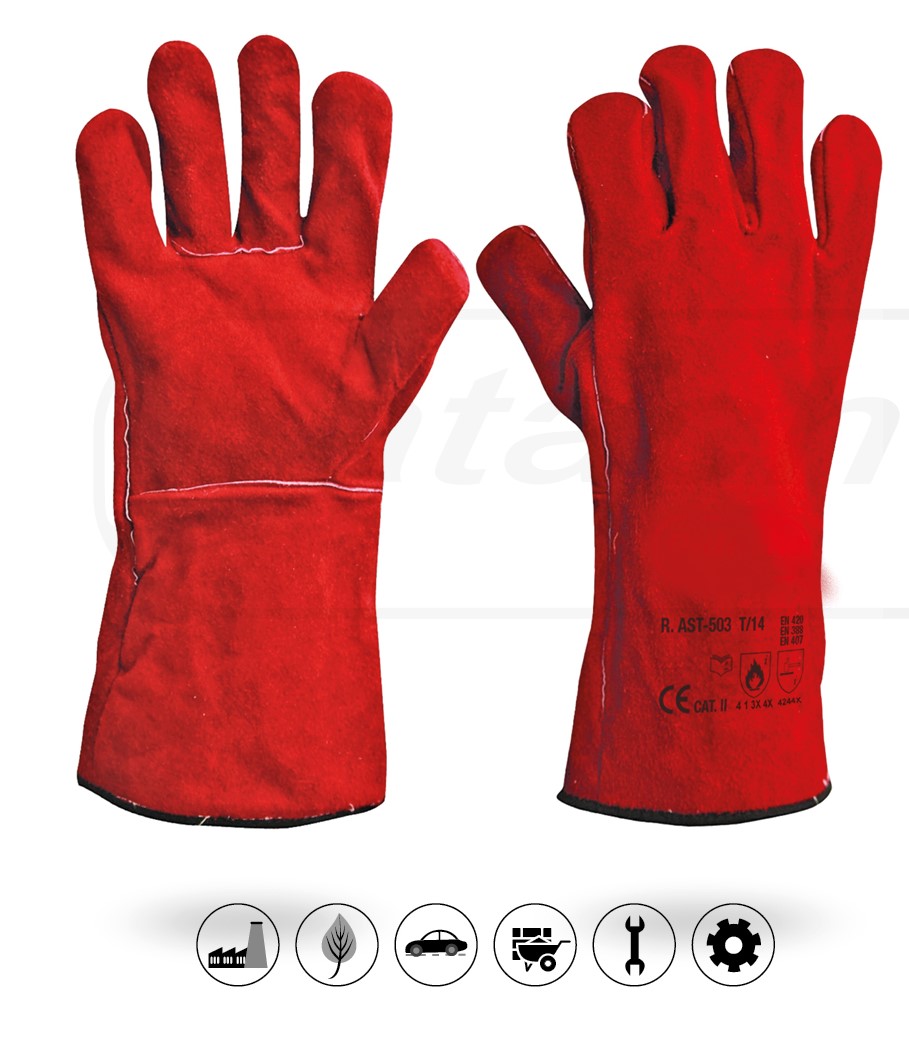 Guante soldador de serraje, acolchado, forro de franela.